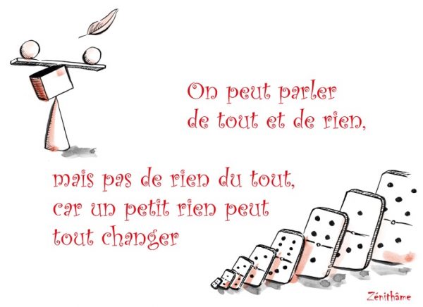 Maxime: On peut parler de tout et de rien, mais pas de rien du tout, car un petit rien peut tout changer.