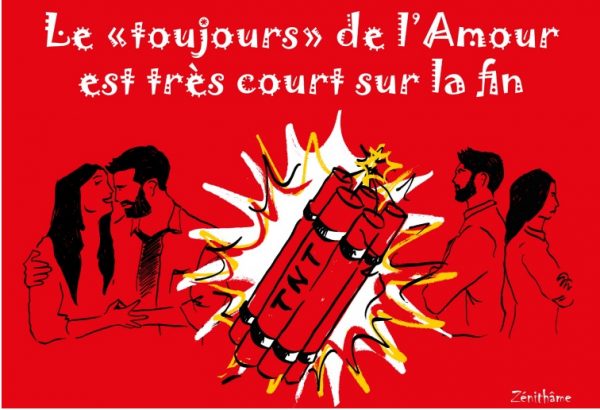Au début, on dit « toujours » comme on dit « Dieu » ou « bonheur » sans trop savoir ce que ces mots veulent dire. Les yeux brillent, le cœur bat plus vite, la bouche salive. On le murmure au creux de l’oreille, au bord du lit, à l’arrière du scooter quand on s’évade de l’Élysée, ou même sur un simple texto ou sexto. « Je t’aimerai toujours », trois syllabes éternelles emballées dans du satin et balancées comme une bouteille à la mer. C’est beau, c’est con, c’est humain…